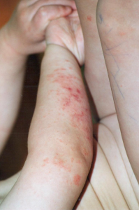 Meine Ärztin gab mir die Auswahl zwischen einer Creme, die letztlich meine Haut austrocknete und dazu ist es kein Kinderspiel sich den ganzen Rücken alleine einzucremen =), oder einer Tablette, bei der man auf Sachen, wie nicht zu viel Sonnenlicht abzubekommen, usw., verzichten musste. Da ich mich immer mehr für meine Haut schämte und baden oder ein rückenfreies Kleid tragen zur grossen Herausforderung wurde, empfiehl mir eine Kollegin DermaSilk. Ich war erstaunt, dass mir dieses Produkt nicht vorher empfohlen wurde, da es keinerlei Nebenwirkungen hat und ganz einfach zu handhaben ist. Nun, was hatte ich schon zu verlieren, dachte ich mir und probierte DermaSilk aus.
