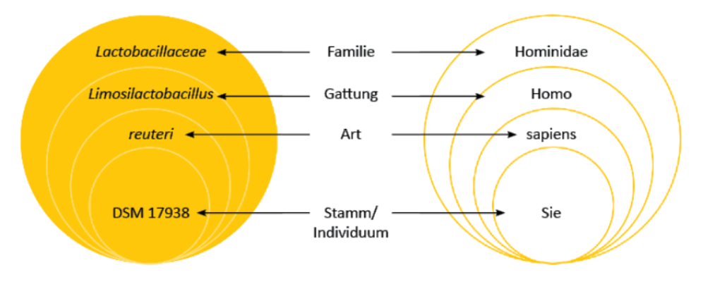 Alle neuen Bezeichnungen beginnen mit «L», damit die Abkürzung weiterhin bestehen kann: Limosilactobacillus reuteri DSM 17938 kann weiterhin als L. reuteri DSM 17938 geschrieben werden.