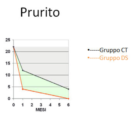 L’impiego di DermaSilk® migliorò entro le 12 ore dall’indossamento la sintomatologia pruriginosa – dolorosa e permise una più celere (di ca. 10 giorni) guarigione dello stato flogistico rispetto al gruppo di controllo (cotone) a parità di età, gravità di malattia e trattamento farmacologico standard.